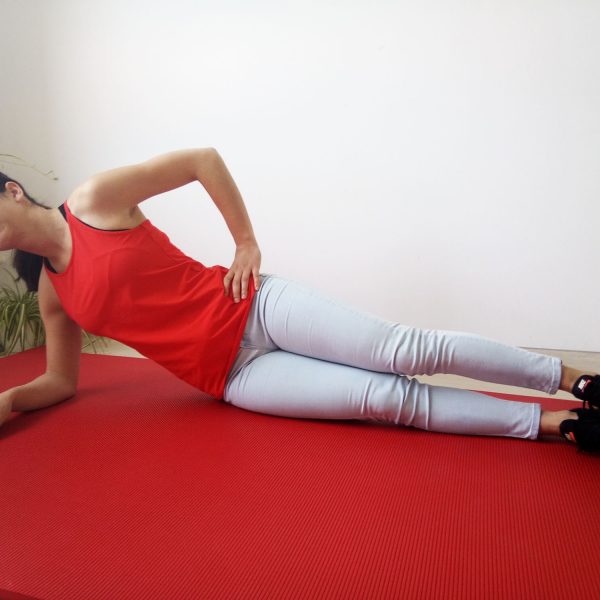 Uležite se nasproti steni, počasi dvignite noge proti stropu in z ravnimi koleni dopustite, da nogi zdrsnita karseda nizko vsaka na svojo stran. V tem položaju raztegujete mišice pritegovalke in upogibalke kolka, zato občutite počasno sproščanje notranje in zadnje strani stegna. Ostanite v položaju dobrih 30-45 sekund.